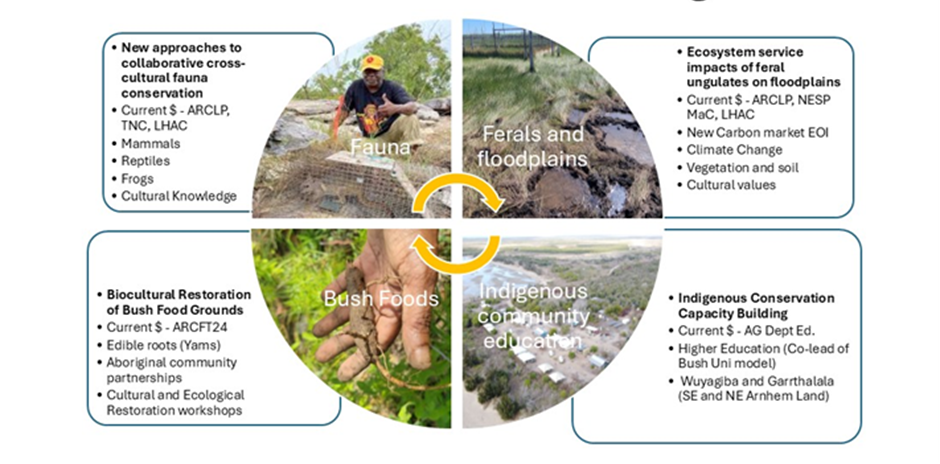Key colleagues: Gerry Turpin (Tropical Indigenous Ethnobotany Centre, JCU), Dr Petina Pert (CSIRO), John Locke (Biocultural Consulting), Dr Philip Clarke, Oliver Costello (Jagun Alliance), Prof Max Finlayson, Prof Sue Jackson, Karissa Preuss, Prof Maurizio Rossetto (Sydney Royal Botanic Gardens), Prof Sarah Legge, Dr Jack Pascoe, Prof Stephen van Leeuwen, Hannah Cliffe and Marlee Hutton.